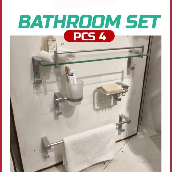 4 Pcs Premium Bathroom Accessory Set – Silver